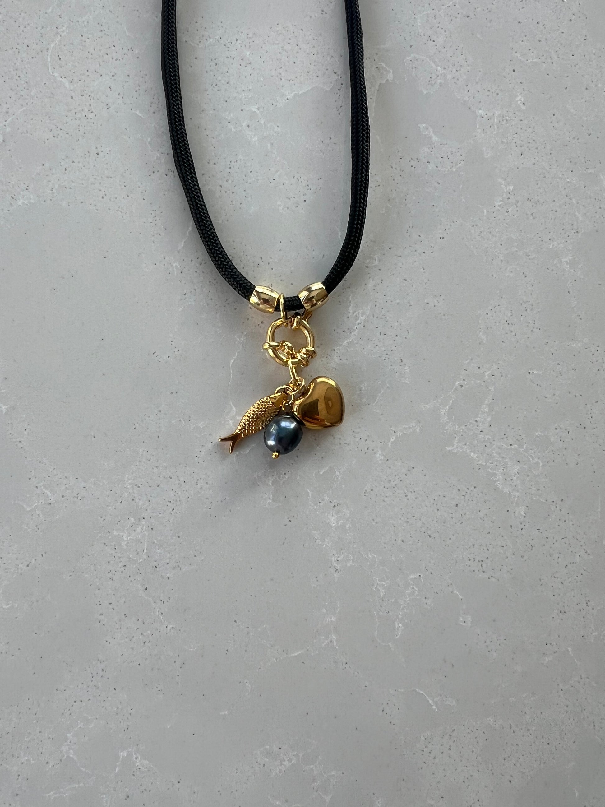 Black para cord necklace. Multiple ways to wear, long and short around your neck. Detachable charms