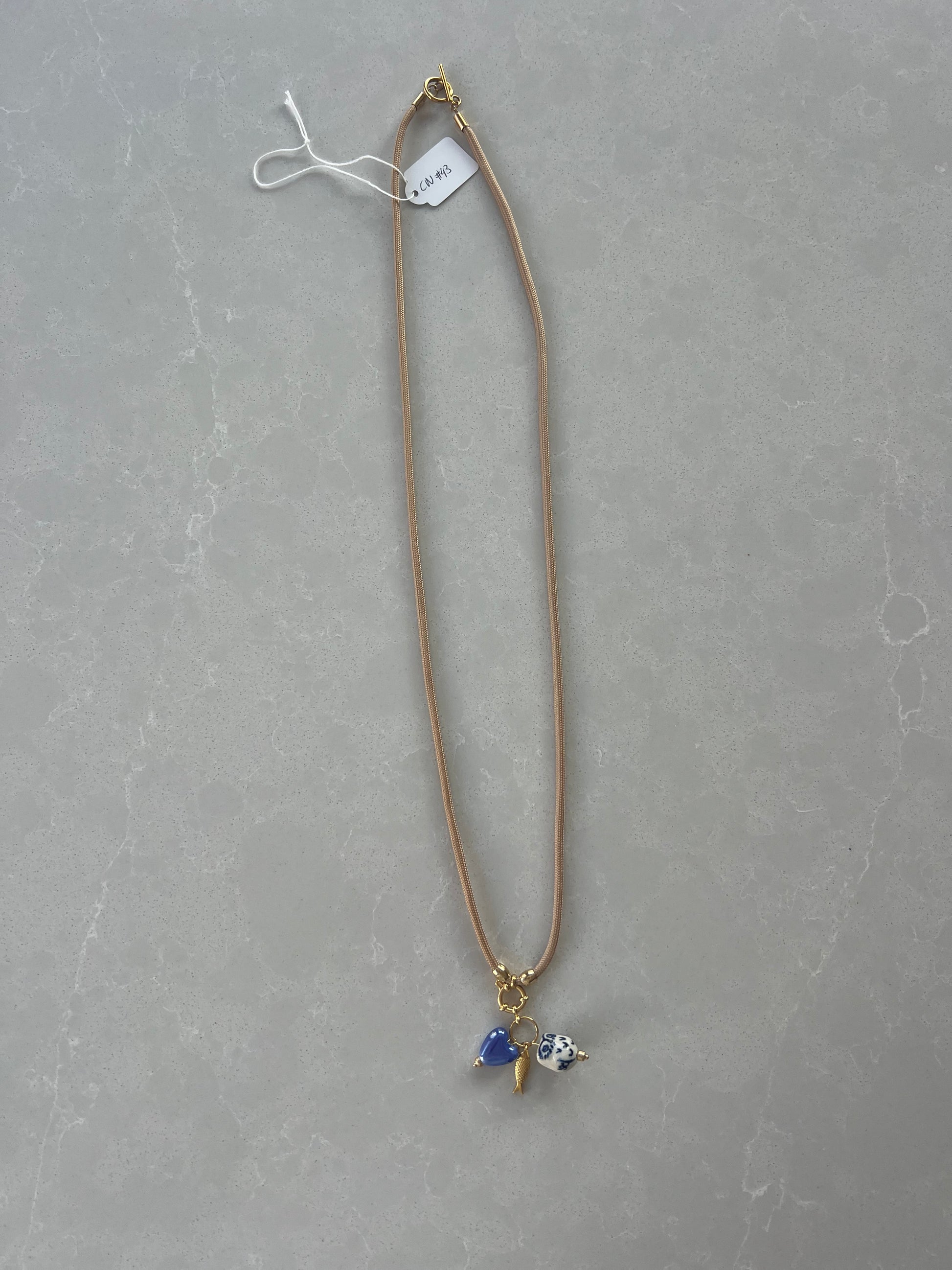 Beige/ sand para cord necklace. Multiple ways to wear, long and short around your neck. Detachable charms