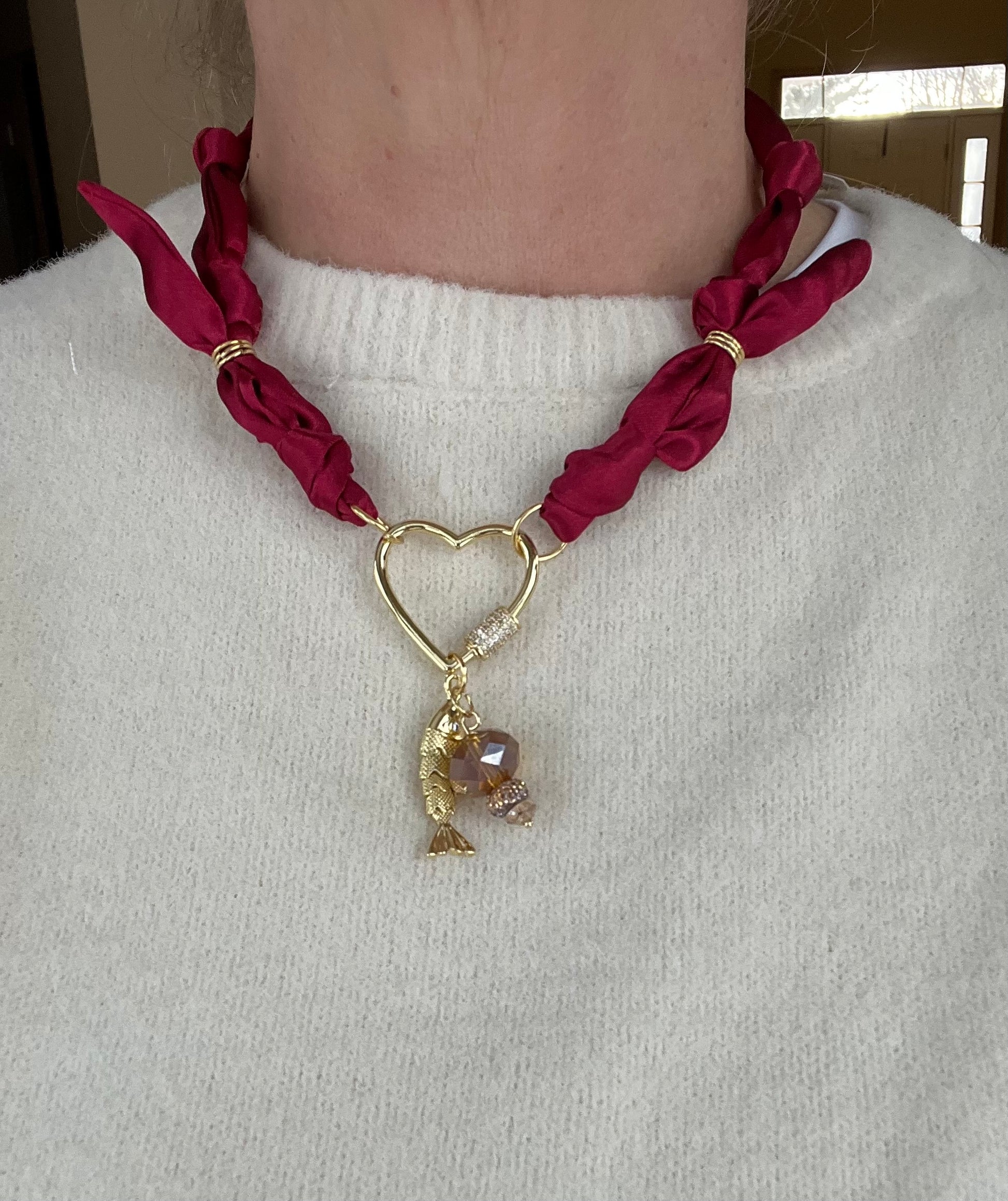 Scarf Necklace with Sparkling heart closure #43